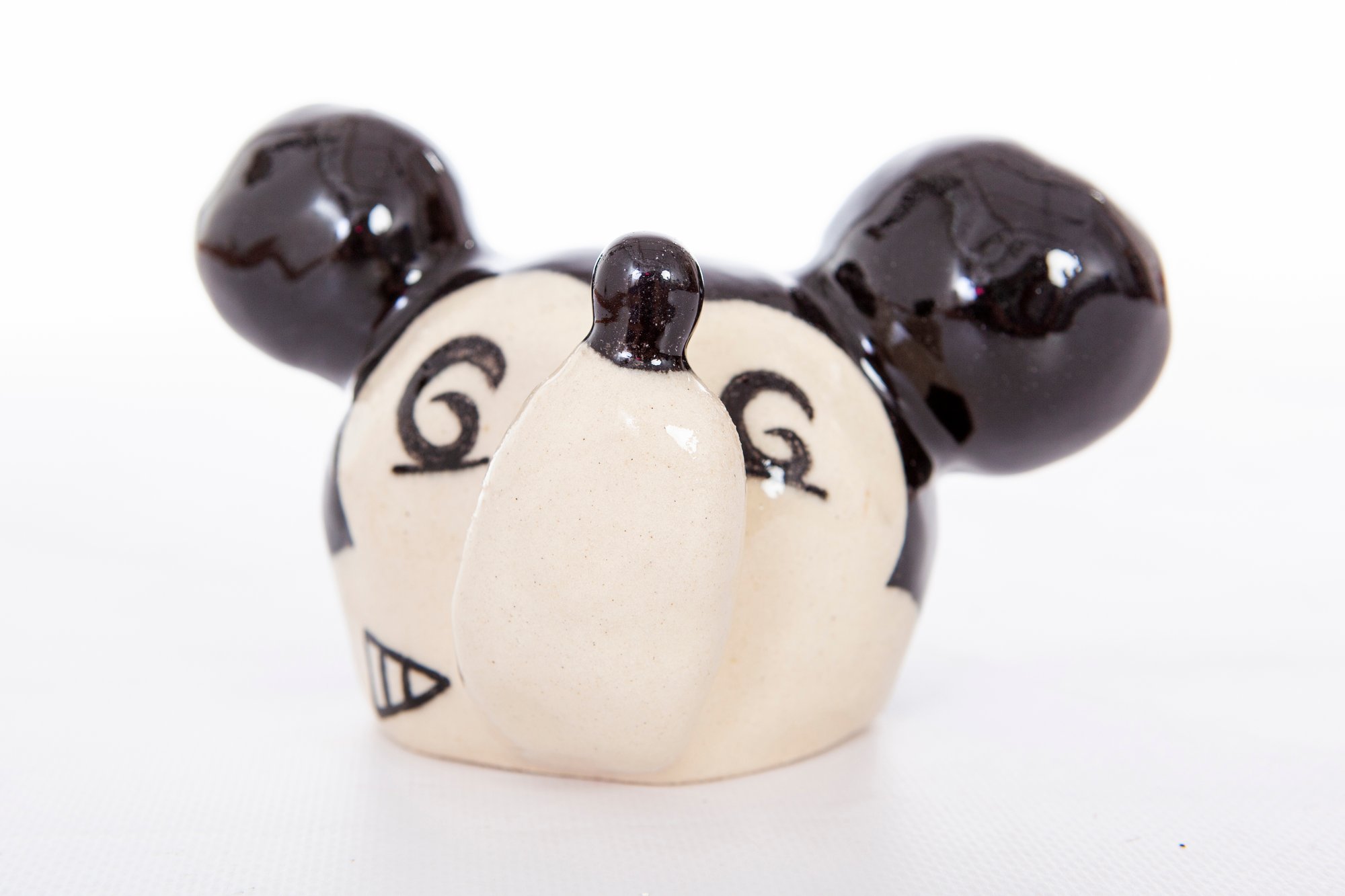 Mouse bust made with high temperature ceramic, slip and transparent glaze.